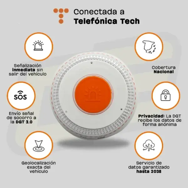 Geolocalización incluida (12 años): envía tu ubicación automáticamente a la nube de la DGT y servicios de emergencia.